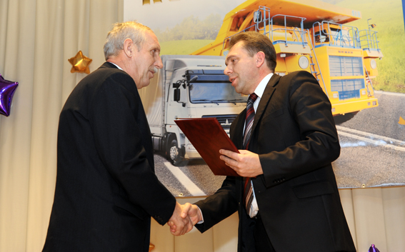 Во время торжественного собрания, посвященного юбилею, работники предприятия получили множество наград. Начальник управления машиностроения министерства промышленности Республики Беларусь Игорь БОРУШКО, вместе с заместителем начальника финансового управления министерства Сергеем СИБИЛЯЙНЕНОМ, приехали поздравить заводчан и привезли самым заслуженным награды министерства. Заместитель генерального директора «БелАвтоМаз» Виктор КРАСНИЧЕНКО выполнил подобную миссию от объединения, в которое входит завод-юбиляр.